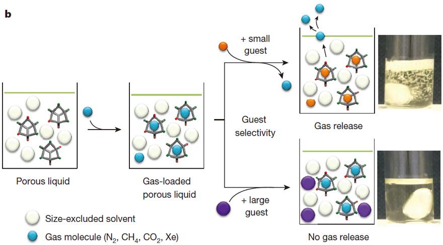 多孔液体对客体气体的选择性溶解。图片来源:Nature [3]