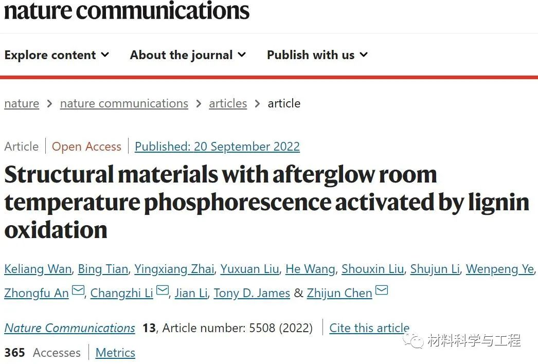 《Nature Commun》:基于木材成功获得余辉室温磷光结构材料