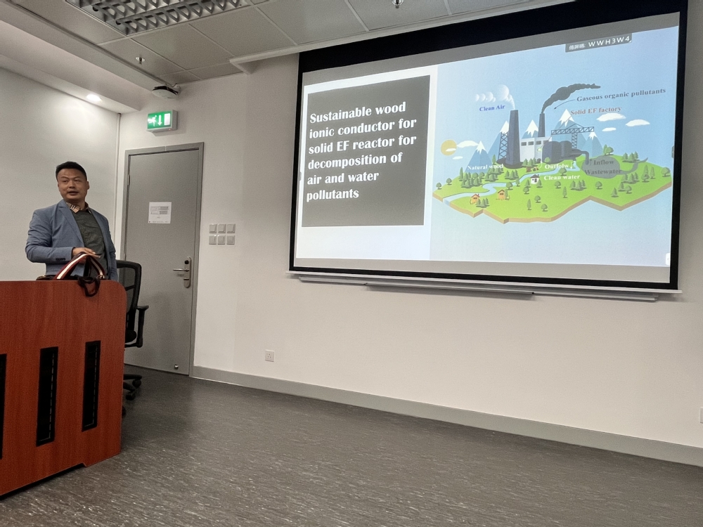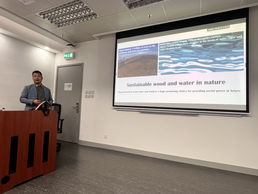 应澳门大学应用物理及材料工程研究院副院长潘辉教授邀请,刘德桃老师于2023年2月21日赴澳门大学学术访问和专题学术报告。学术报告于上午10时开始,刘德桃老师为满座的师生,开展了题为”Sustainable Wood for Eco-materials, Energy and Environmental Application“的学术报告,历时近1小时,主要从目前广泛存在的白色塑料污染、传统石化能源危机,为天然可再生木材在生态绿色材料、可再生能源及环境材料方面的广泛应用提供了广阔的应用前景。