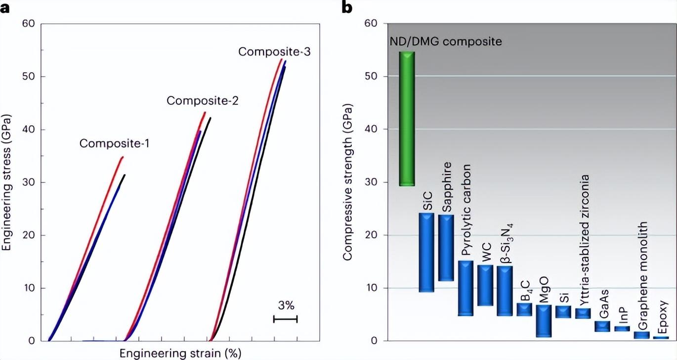 来源:Li, Z., Wang, Y., Ma, M. et al. Ultrastrong conductive in situ composite composed of nanodiamond incoherently embedded in disordered multilayer graphene. Nat. Mater. 22, 42–49 (2023).