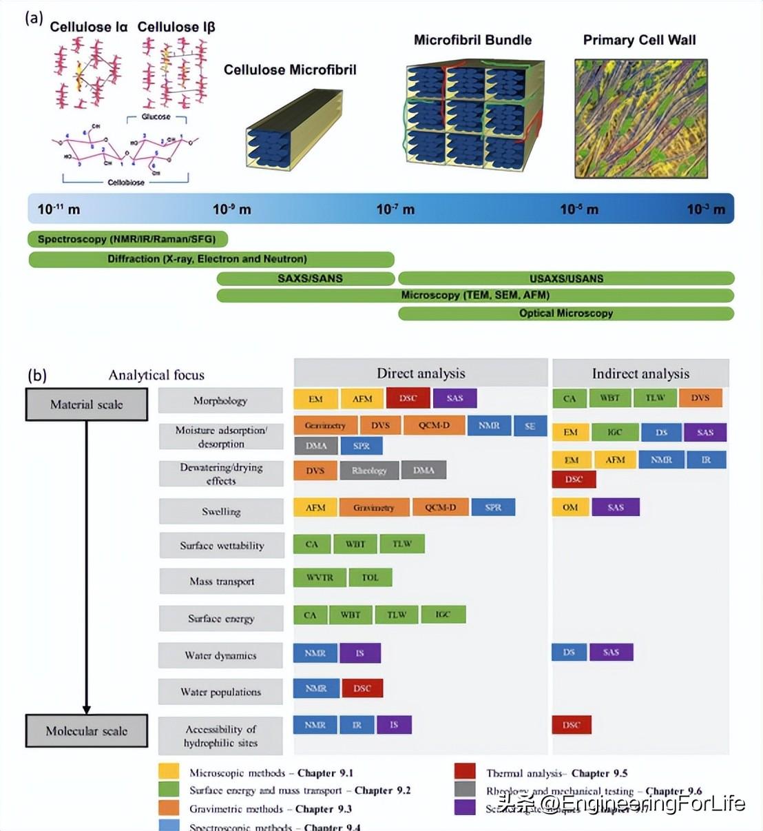 图4 用于直接和间接分析纳米纤维素-水的相互作用的实验技术概述