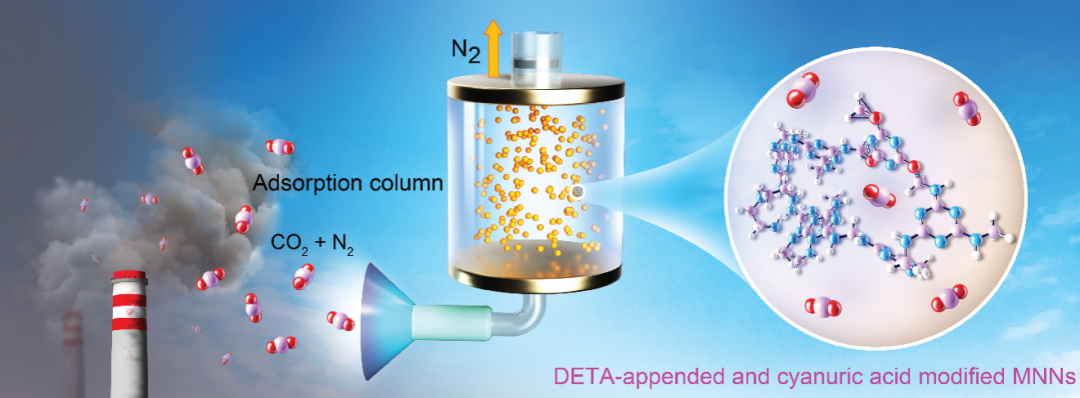 相比之下,用 DETA 和氰尿酸改性的 MNN 更加节能,无需把它在高温下加热才会将 CO2 释放。它于大概 40 ℃条件下实现捕获 CO2,而在 80 ℃便能释放。