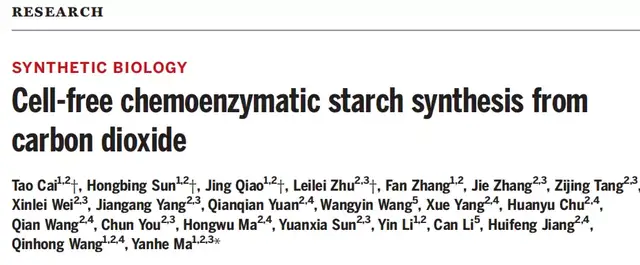 9 月 24 日,相关论文以《无细胞化学酶从二氧化碳合成淀粉》(Cell-free chemoenzymatic starch synthesis from carbon dioxide)为题发表在最新一期的 Science 上,马延和为该论文的通讯作者。