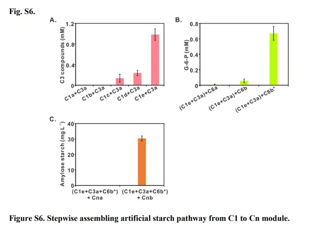 图 | 从 C1 到 Cn 模块逐步构建人工合成淀粉途径的过程(来源:Science)