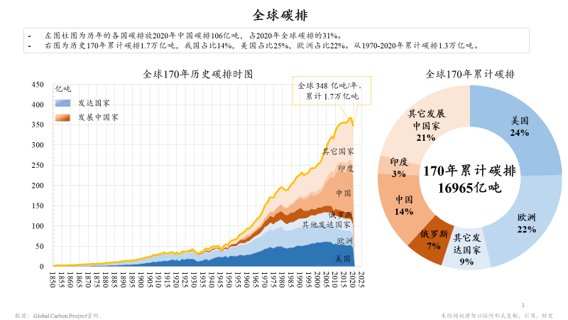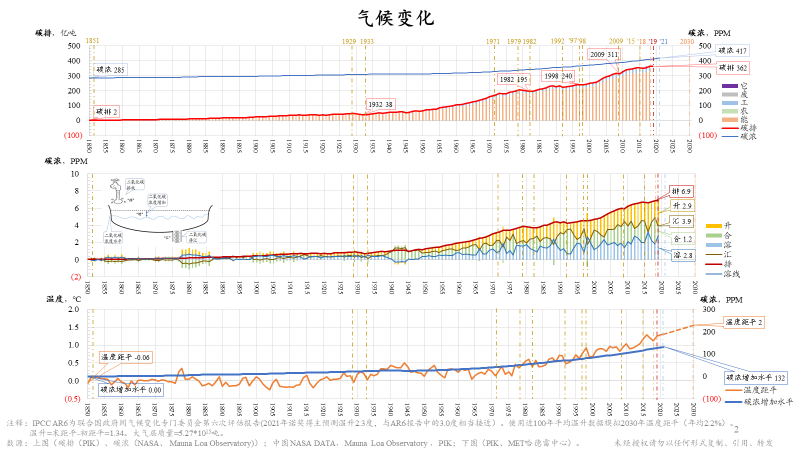 下面这张图是全球170年历史碳排时图,累计约1.7万亿吨二氧化碳排放。