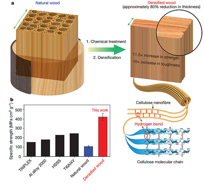 2. Wood made denser and stronger. Nature, 2018, 554, 172-173