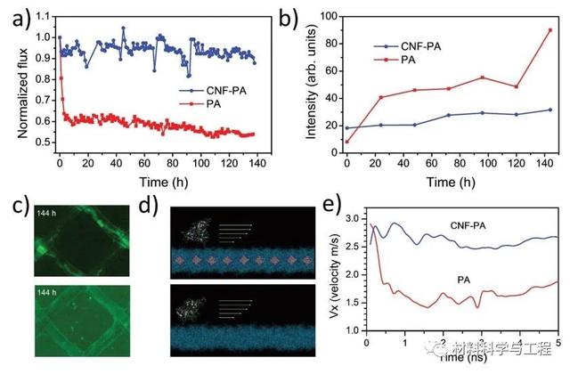 图4CNF-PA和PA膜的防污性能研究