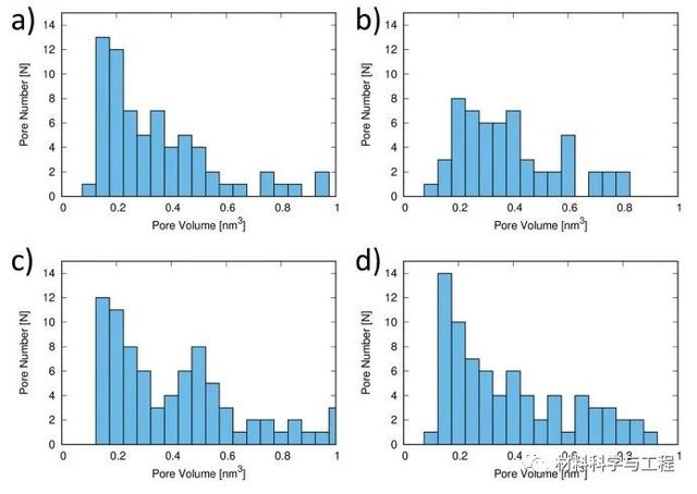 图2.(a)干燥的PA样品,(b)干燥的CNF-PA膜,(c)含水的PA和(d)含水的CNF-PA的孔径分析