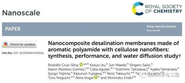 原标题:日本信州大学《Nanoscale》一种优异的反渗透海水淡化膜!