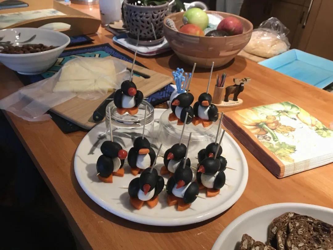 Susan Solomon用橄榄和胡萝卜等食材做的企鹅美食