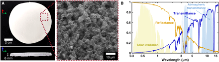 这种材料成功的关键在于,它阻挡了超过90%的入射阳光,从而保护下面的表面免于加热的同时,它还对红外线非常透明,允许大约80%的热射线自由地向外传递。这样的特性让研究人员特别兴奋。试验结果表明,它可以显著地冷却放置在隔热层下方的金属或陶瓷材料制成的板。然后这块排放板可以冷却一个连接到它的容器,或冷却与它接触的线圈中的液体,从而为农产品、空气或水提供冷却。