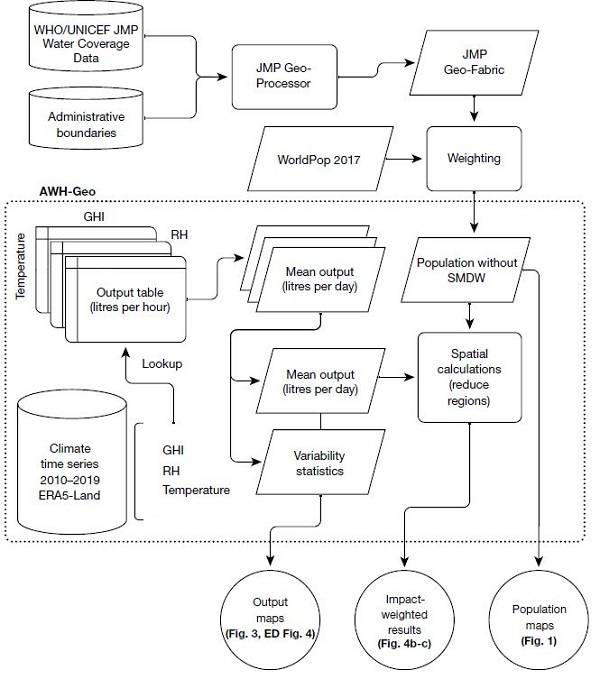 据物理学家组织网(phys.org)2021年10月29日报道,一组来自X- Alphabet的“月球探测器工厂(moonshot factory)”、谷歌和世卫组织/联合国儿童基金会联合监测项目(WHO/UNICEF Joint Monitoring Programme)、数据,分析,计划和监控部门(Division of Data, Analytics, Planning and Monitoring)、联合国儿童基金会(UNICEF)的研究人员,开发了一种模型,它显示一个假设的装置,利用太阳能从空气中收集水,可能为世界各地十亿人解决饮水问题。