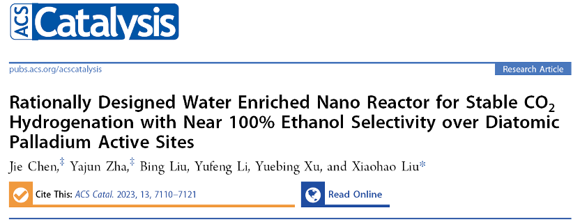 近日,江南大学刘小浩教授团队在设计构建纳米“蓄水”膜反应器稳定结构封装的“双钯位点”应用于二氧化碳热催化连续流一步高效稳定制乙醇的研究工作中取得里程碑式突破,这一成果近期以题为“Rationally Designed Water Enriched Nano Reactor for Stable CO2 Hydrogenation with Near 100% Ethanol Selectivity over Diatomic Palladium Active Sites”发表在国际顶级催化期刊ACS Catalysis上。