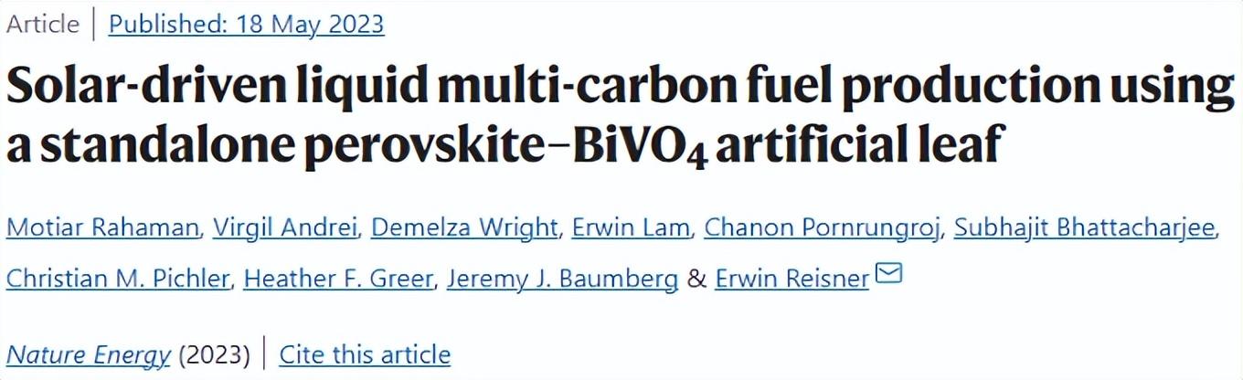 最新Nature Energy,人造树叶CO₂RR!