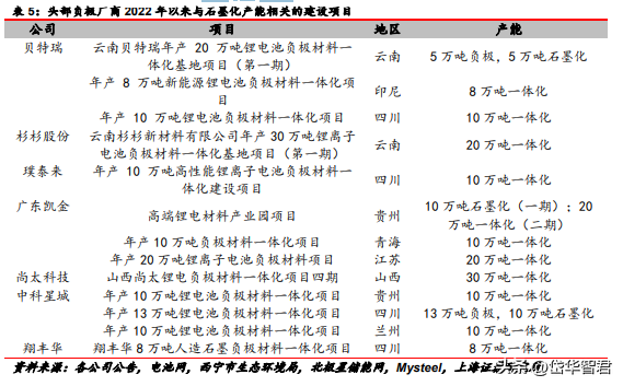 据不完全统计,假设一体化项目中石墨化与负极产能 1:1 配比,则自 2022 年以来,头部负极材料企业计划建设的石墨化产能已超 180 万吨。