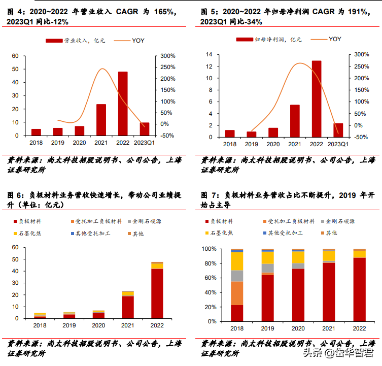 2021、2022年,新能源汽车动力电池、储能电池需求旺盛,带动负极材料市场快速增长,叠加公司产能快速释放及产品价格提升,公司负极材料业务收入与利润高增,带动公司整体业绩大幅增长。