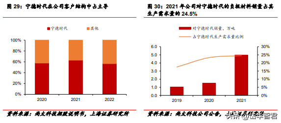2021 年,公司对宁德时代的负极材料销量约为 4.97 万吨,占当年宁德时代生产需求量的 24.5%。