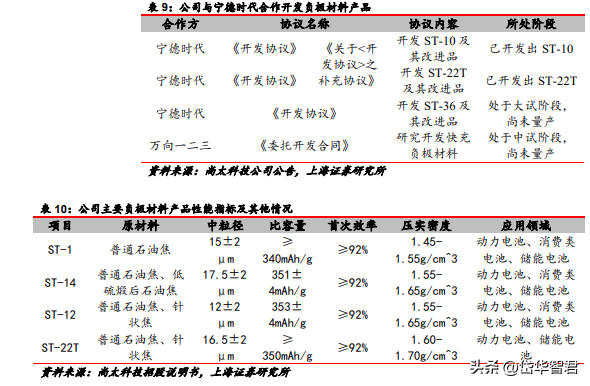 公司与宁德时代等下游锂电池厂商开展合作研发,客户粘性强。公司开发更高性价比、使用更广泛的焦类原料,探索与之相匹配的负极材料生产设备和生产工艺,满足客户多样化的锂电池设计需求。