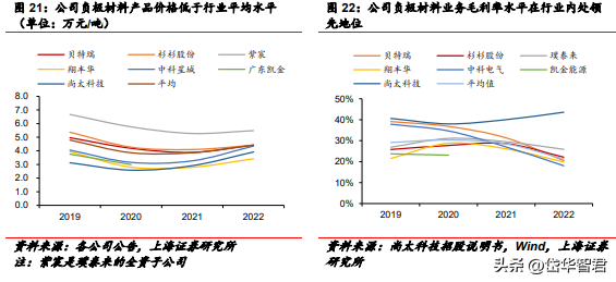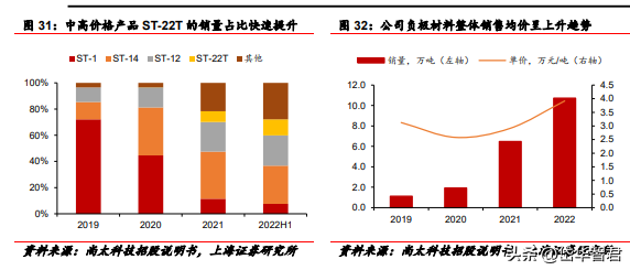 公司与宁德时代合作研发 ST-22T 负极材料产品价格相对较高,其销量占比提升带动公司负极材料整体销售均价提升。