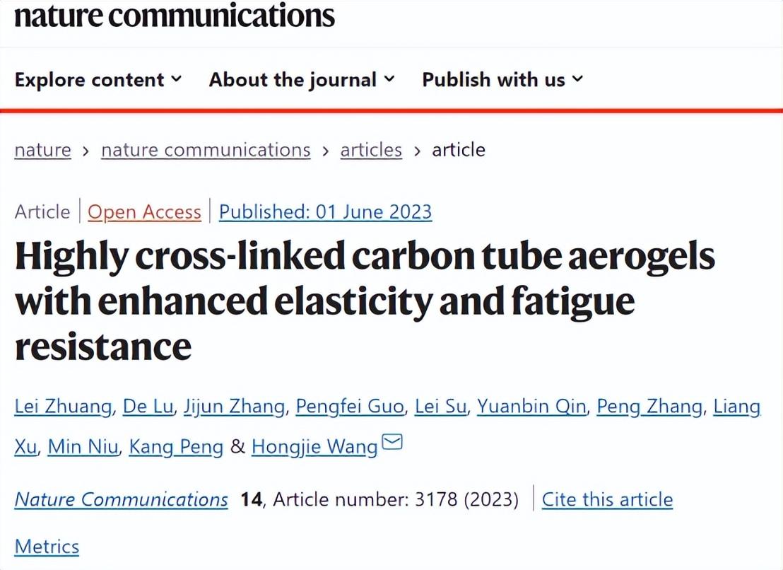 《Nat. Commun.》: 超弹性、抗疲劳的碳气凝胶!
