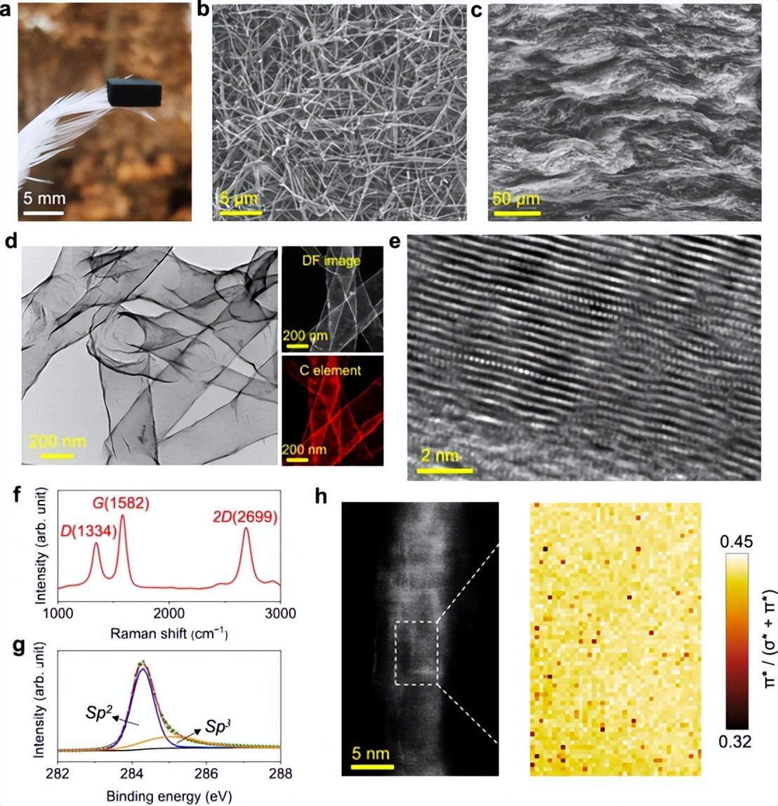 综上所述,该研究提出了一种有效的方法来制造高性能的CTA。具有sp2-sp3混合键的高度互连的碳管能够快速传递载荷。因此,低密度(~12-40 mg cm-3)的CTAs表现出良好的机械性能,包括高机械强度(8.2-20.9 MPa)、抗压弹性(高达99%的应变)和抗疲劳性(在99%的应变下进行1000次抗压循环后,永久变形小于1.5%)。此外,CTAs在氩气环境下拥有高达2500℃的热稳定性。CTAs还表现出作为各种应用的可行候选者的潜力,如抗冲击和能量耗散,主要是因为它们可以吸收高达83.4%的冲击能量而不产生任何结构损伤,通过自由落体钢球测试证明了这一点。此外,它们的高弹性允许调整导电性和可调整的电磁屏蔽行为。这些特性使它们成为理想的用途,例如用于耐磨的电子器件和高精度的压力传感器。