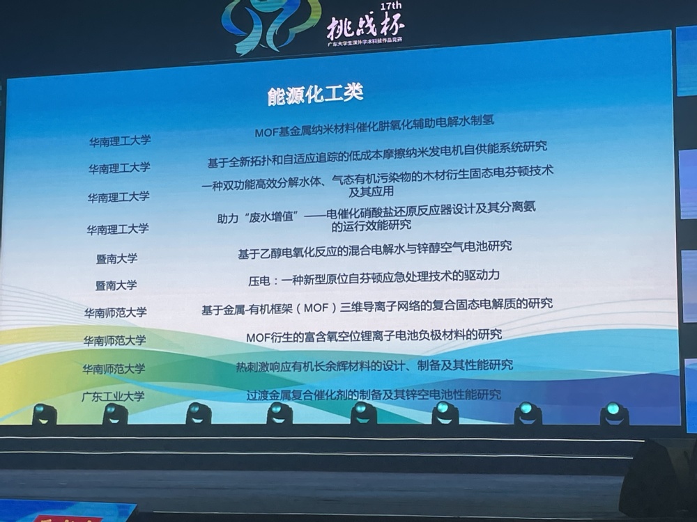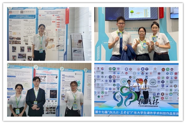 在课题组刘德桃老师的指导下,钱志云、刘超城、罗瑶、吴培琳、段雨龙、本科生吴迪的参赛作品《一种双功能高效分解水体、气态有机污染物的木材衍生固态电芬顿技术》荣获特等奖,推进环境污染的绿色治理及可持续低碳资源的高效利用,是大力发展我国环境保护与减碳降排事业的有效途径之一。该发明充分运用自然界中广泛存在的空气、水和可再生木材,研制成功了一种全新的固态电芬顿技术,设计制备木材衍生准固态离子导体并串联阴极、阳极流室,可在阳极流室产活性氧物种、阴极流室产过氧化氢(H2O2)和羟基自由基(OH•),其高氧化性可持续高效分解水体和气态有机污染物,甚至一些气态病毒、病菌等危害物,实现在室温条件下矿化为无毒的 CO2和 H2O; 本科技发明制作通过可控制备木材基固态离子导体,优化调控阳极、阴极流室氧化还原反应动力学,发展阳极活性氧物种和阴极H2O2/OH•产率、稳定性、持久性,瞄准实质提升有机污染物分解能力、稳定性和持久性的关键技术。