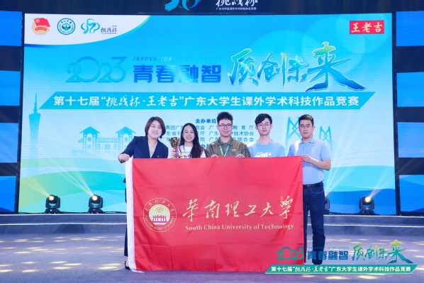5月27日至28日,由共青团广东省委员会、广东省教育厅、广东省科学技术厅、广东省科学技术协会、广东省社会科学院及广东省学生联合会共同主办,中山大学承办,广州王老吉大健康产业有限公司支持的第十七届“挑战杯”广东大学生课外学术科技作品竞赛终审决赛举行。华南理工大学共27项作品入围终审决赛,最终揽获特等奖21项、一等奖4项、二等奖2项,并以项目总分第一的优异成绩,连续第六年捧得大赛最高荣誉“挑战杯”。