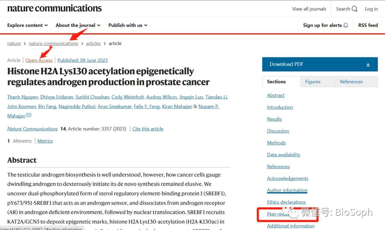 有些文章在出版时,期刊杂志社会将同行评议文件(包括审稿意见和作者回复)一起出版。其中,就包括Nature子刊---Nature Communications(简称NC,想必有不少老师都听说过NC或者阅读过NC的文章...)