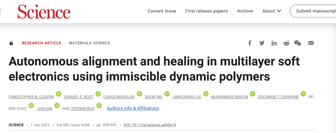 两周2篇Science!鲍哲南团队研制出这类皮肤,受伤能自愈