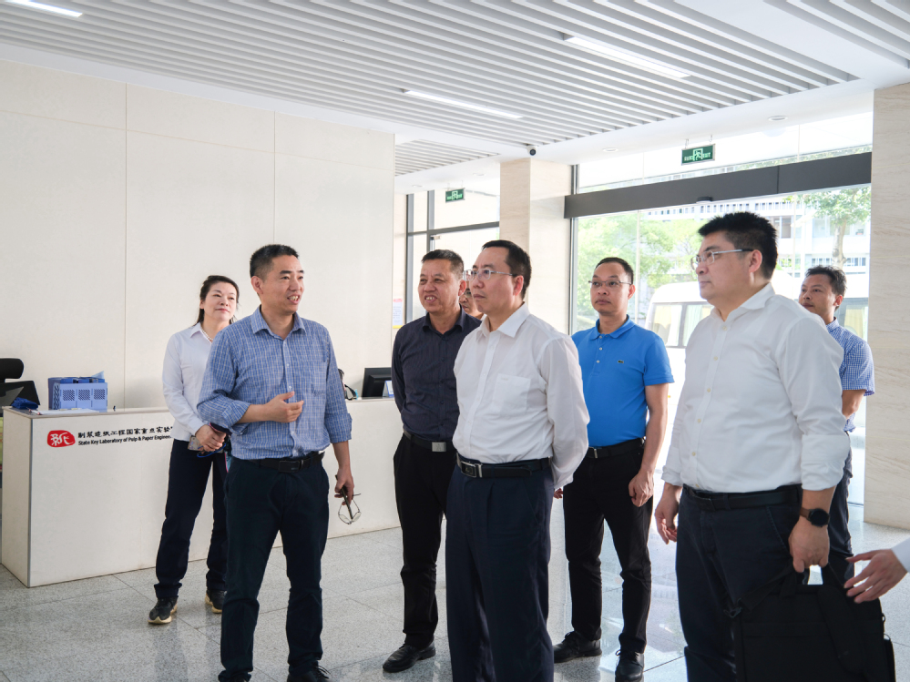 根据广西全面深化粤桂合作领导小组印发的2023 年工作要点,为贯彻落实两省区政府签署的全面深化粤桂合作框架协议内容,加快科技人才在两省区间有序流动和合理配置,结合2023年4 月15—16 日参加第二十一届中国国际人才交流大会契机,广西科技厅蹇兴超副厅长等在广州开发区海外高层次人才服务园区举办“2023 年桂粤科技人才交流对接会”,组织桂粤两地科技人才,进行项目、技术和人才对接交流,促进桂粤人才达成一批合作项目。 2023年4月16日,广西科技厅蹇兴超副厅长一行专程莅临本团队实验室考察指导工作,并考察了重点实验室设备、装备及检测仪器条件,双方就未来如何促进相关科技成果快速推进落地广西,促进广西高质量发展广泛交换了意见,会议取得富有成效的成果。