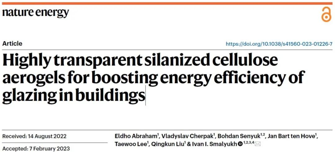 Nature Energy:高度透明的硅烷化纤维素气凝胶,用于提高建筑物玻璃的能源效率