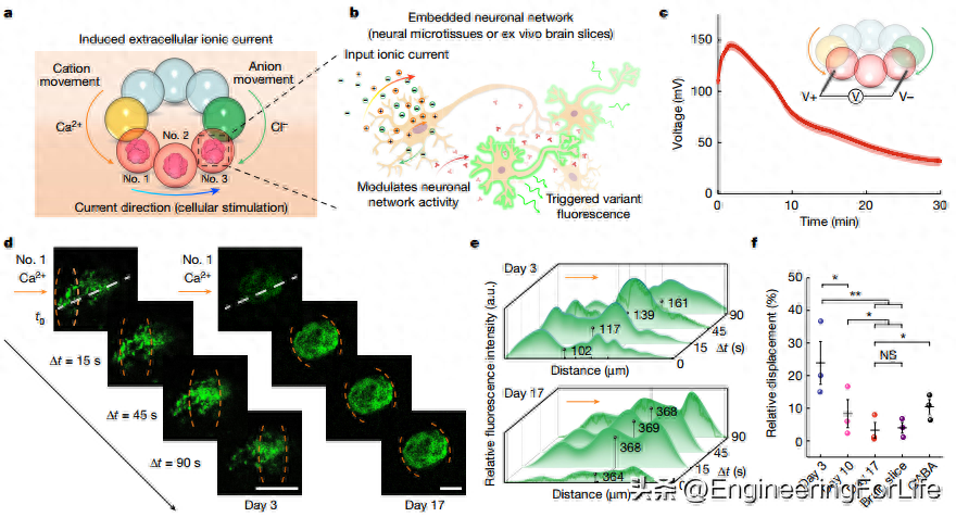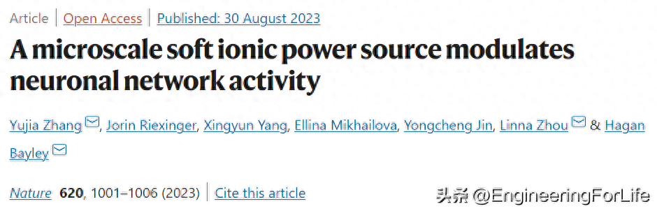 本研究提出的液滴装置可作为生物相容性和生物离子电流源,用于调节三维神经微组织和体外小鼠脑切片中的神经元网络活动。最终,本研究的软性微尺度离子电子装置可能会集成到生物体内。相关工作以题为“A microscale soft ionic power source modulates neuronal network activity”的文章发表在2023年8月30日的国际顶级期刊《Nature》。