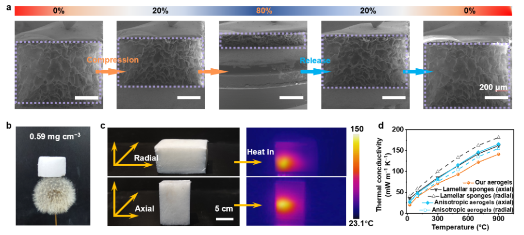 图4. 陶瓷纳米纤维气凝胶的热物理和力学性能