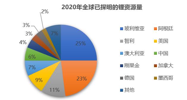 全球探明锂资源量约8551万金属吨,集中在南美、美国、澳洲等地。全球锂资源封闭盆地卤水占主要份额。根据《中国锂矿资源调查报告》,锂矿类型分为卤水型和硬岩型两大类,其中卤水型锂矿包括盐湖卤水型锂矿和地下卤水型锂矿,硬岩型锂矿包括花岗伟晶岩型锂矿和花岗岩型锂矿。南美“锂三角”锂资源量占 60%,中国锂资源储量占6%。根据美国地质调查局 USGS 数据,截至 2020 年末,全球锂资源量约 8600 万吨,其中南美“锂三角”地区(智利、阿根廷和玻利维亚交界处的高海拔湖泊和盐沼)的锂资源量之和约占全球锂资源总量的近 60%,其他资源量丰富的国家还有澳大利亚、美国和中国,其中澳大利亚锂资源量为 630 万吨且大部分为硬岩型锂矿,是世界上最大的硬岩型锂矿出口国。我国锂资源储量约占全球锂资源储量的 6%。