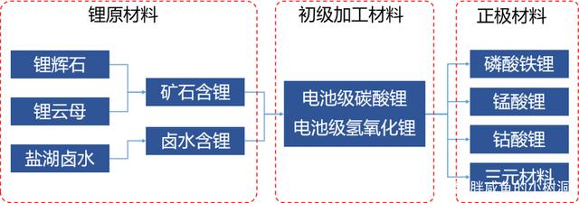 锂在自然界主要有两种类型存在,一是以锂辉石、锂云母、透锂长石等含锂矿石的形成存在于岩矿中,另一类是以锂离子形式存在于盐湖卤水、地下卤水和海水中。目前锂资源获取主要有三种工艺:锂辉石提锂、锂云母提锂和卤水(盐湖提锂)。锂资源处于产业链最上游,商业化投产周期较长,目前,面对庞大的下游消费市场需求,短期内资源供给存在一定难度。