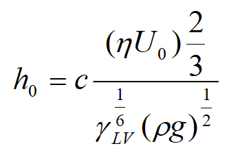 方程1:用于计算浸涂法中处于粘滞流区域的薄膜厚度h0