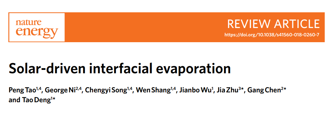 光热转换 | Nature energy:太阳能驱动的界面蒸发