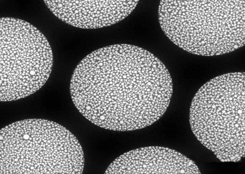 纯碳支持膜:顾名思义,纯碳支持膜仅由金属网和碳层组成。这种支持膜适用于有机溶剂体系(比如溶于有机溶剂的纳米颗粒)的表征。因为普通的载网都有一层有机膜,有机溶剂常会将膜溶解,导致样品脱落(如果你在 TEM 表征时,发现载网内没有样品,或者样品量极少,很有可能是有机膜被溶解所致)。
