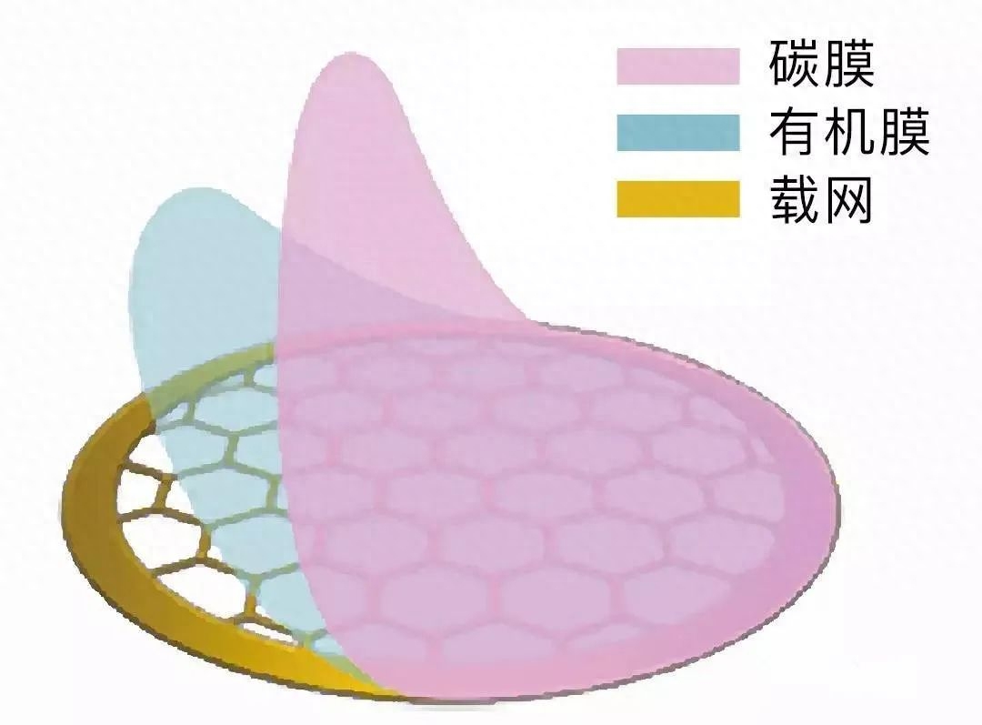 碳支持膜:它包括金属网,有机层和碳层。载网受到电子束轰击时会产生电荷积累而使样品运动、膜断裂。引入碳层可提高载网导电性与导热性,厚度一般在7~10 nm之间。