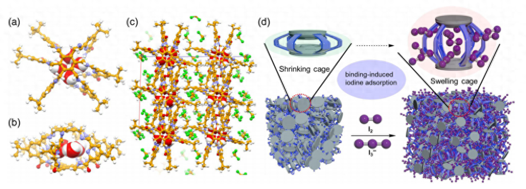与多孔材料相比,非多孔材料往往被认为吸附性能很差、甚至不具备吸附能力。直到 21 世纪初,人们才逐渐发现某些具有结晶性的非多孔材料(即非多孔晶态材料),对一些特定的客体分子也具有一定的吸附能力。这类基于大环或分子笼的分子材料,被称之为非多孔自适应性晶体材料。虽然这类材料具有易于规模制备、溶液加工性好、重复利用性高等特点。但是与多孔材料相比,它们对目标客体分子的吸附量小、吸附速率慢,特别是在水溶液中的吸附性能不理想。因此,人们依然普遍认为,非多孔吸附材料在吸附容量和吸附速率等方面依然无法与多孔吸附材料,特别是无法与高性能多孔吸附材料(比如气凝胶)相媲美。