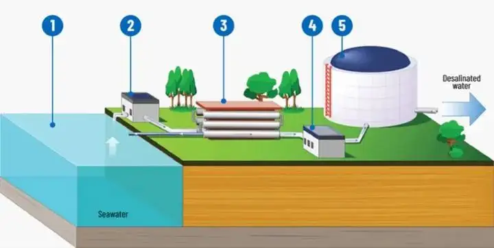 然而,从海洋中获取饮用水需要复杂且昂贵的海水淡化技术,包括一系列高成本的预处理和后处理的系统,如抽取海水、预处理、反渗透、后处理以及最终的存储和输送。
