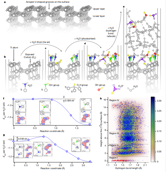 图3. λ-Ti3O5(11O)表面辅助水的吸附和解离