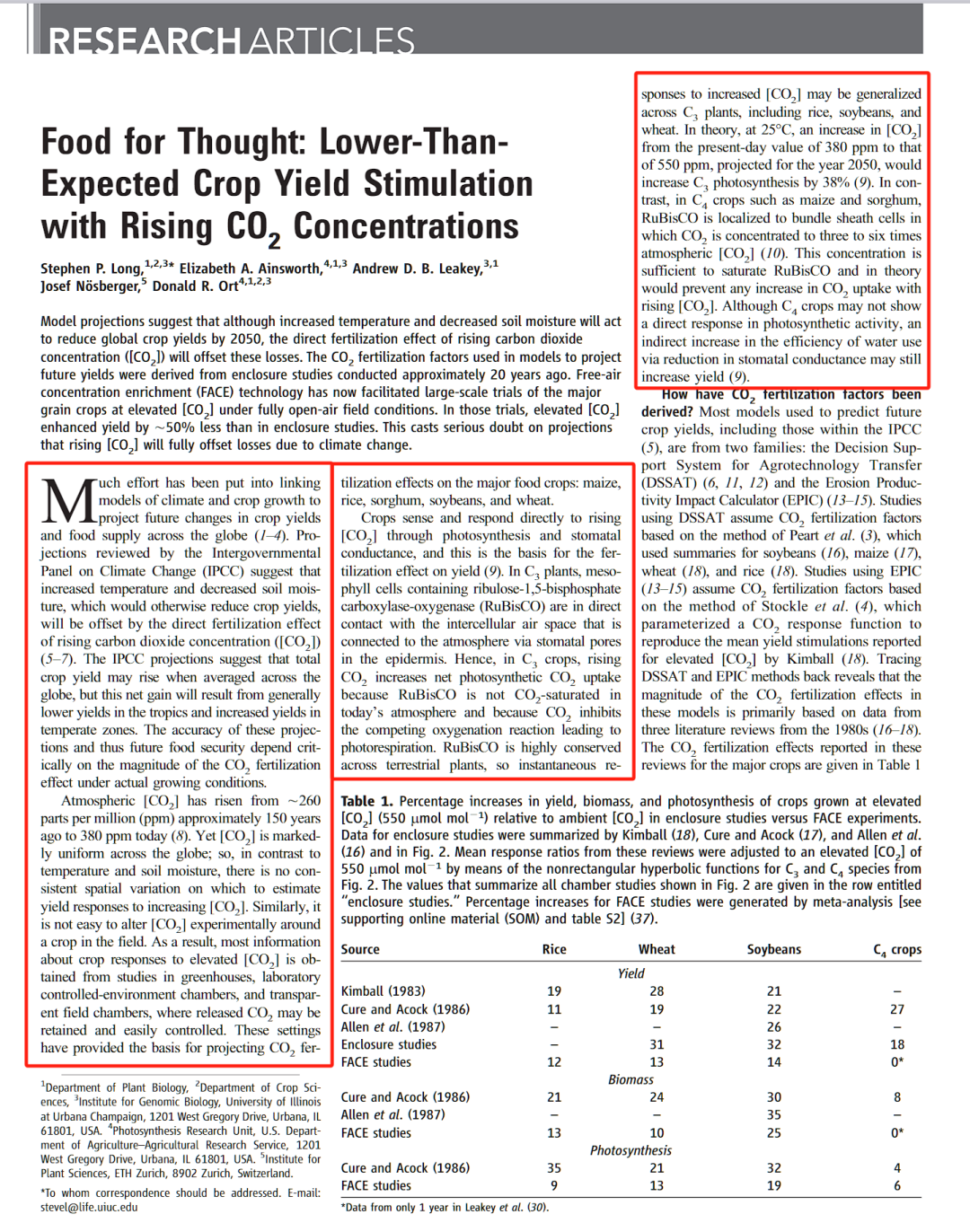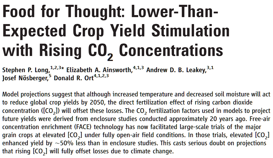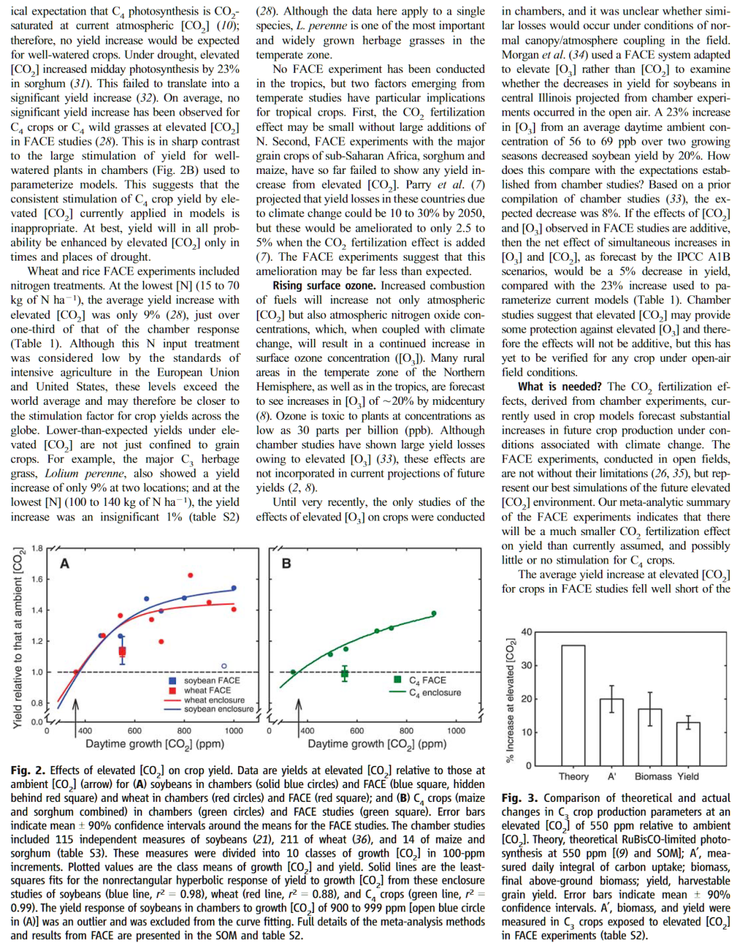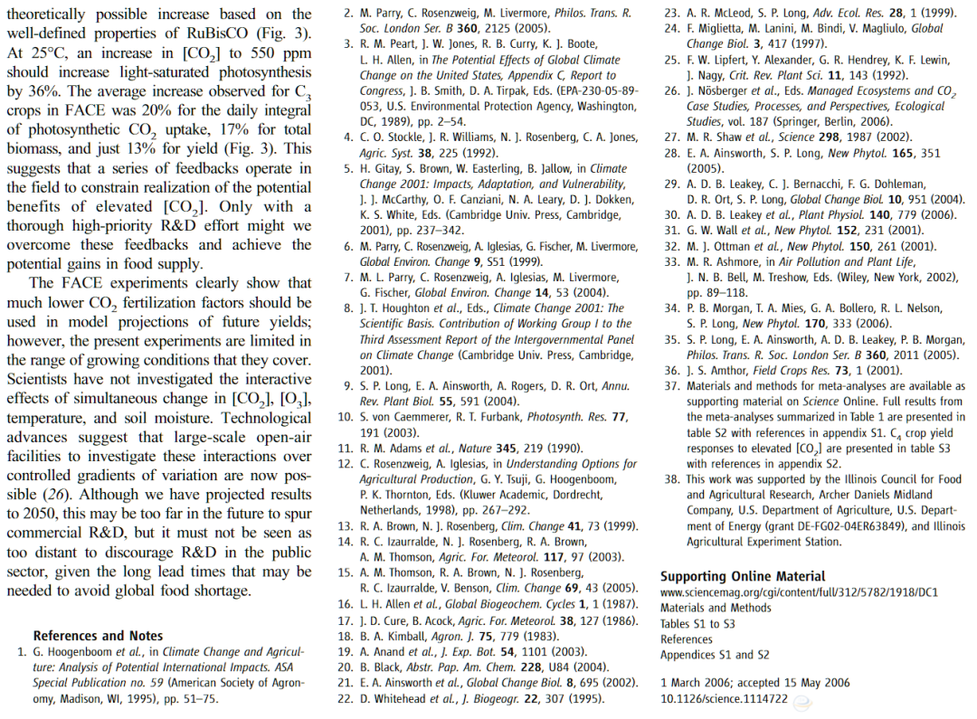 然而,尽管论文的写作结构都差不多,为什么有些研究能够发表在Nature & Science上,而有的论文却接连被三流期刊拒稿?这期文章我们就来以一篇2006年发表在Science期刊上的经典论文为例来探讨一下,怎么样才能在固定的写作框架下写出来让编辑审稿人眼前一亮的论文来?论文名:Food for Thought: Lower-Than-Expected Crop Yield Stimulation with Rising CO2 Concentrations