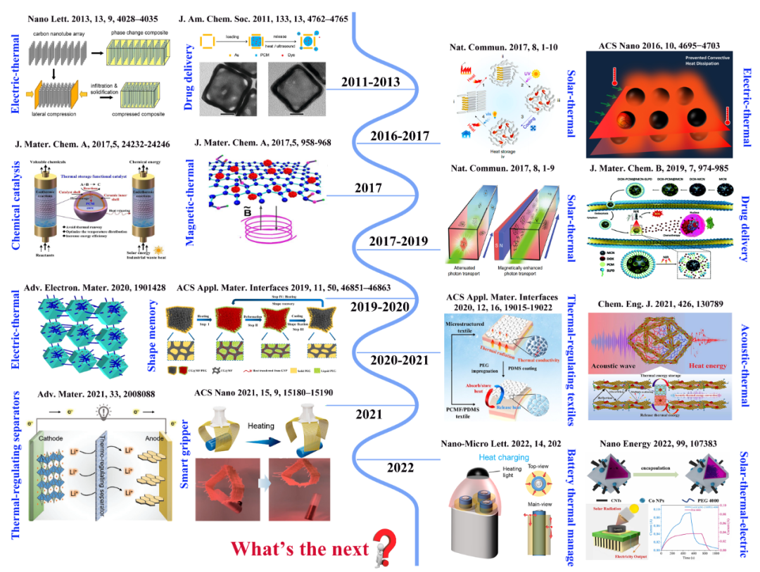 近年来,随着交叉学科的快速发展,多功能相变材料正在进入更前沿的跨学科领域。2023年3月,北京科技大学王戈&北京师范大学陈晓团队以“Phase Change Thermal Storage Materials for Interdisciplinary Applications”为题在《Chemical Reviews》(影响因子:72.087)上发表综述文章,全文共72页,5.4万字,40张图。讨论了相变材料的储热机理、传热机理和能量转换机理,总结了相变材料在交叉学科中的最新进展,揭示了复合相变材料的微观结构与热物性之间的关联性。最后,根据相变材料的交叉学科应用,提出了当前面临的挑战和未来的展望。