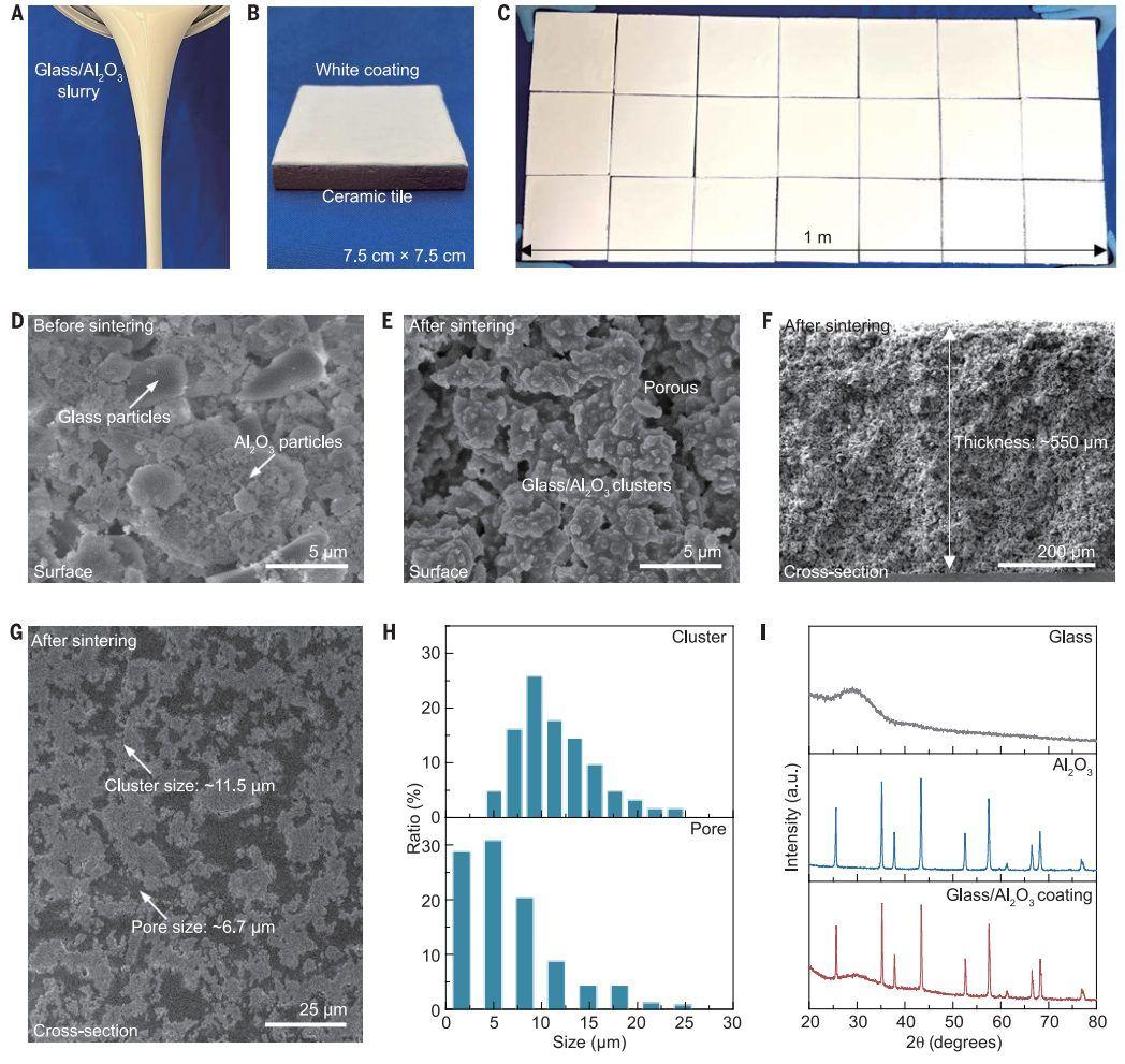 图2. 辐射冷却玻璃涂层的制作和形貌