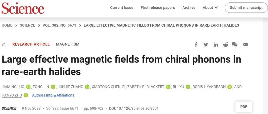 五、莱斯大学朱涵宇Science:稀土卤化物中手性声子的有效磁场