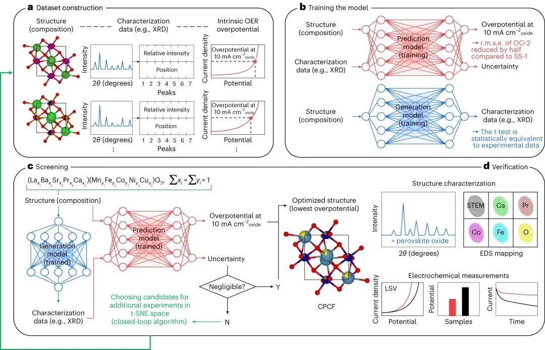 鉴于此,波兰科学院有机化学研究所BartoszA.Grzybowski教授、韩国首尔国立大学TaeghwanHyeon教授在NatureMaterials上发表了题为“Activelearningguidesdiscoveryofachampionfour-metalperovskiteoxideforoxygenevolutionelectrocatalysis”的最新研究成果。