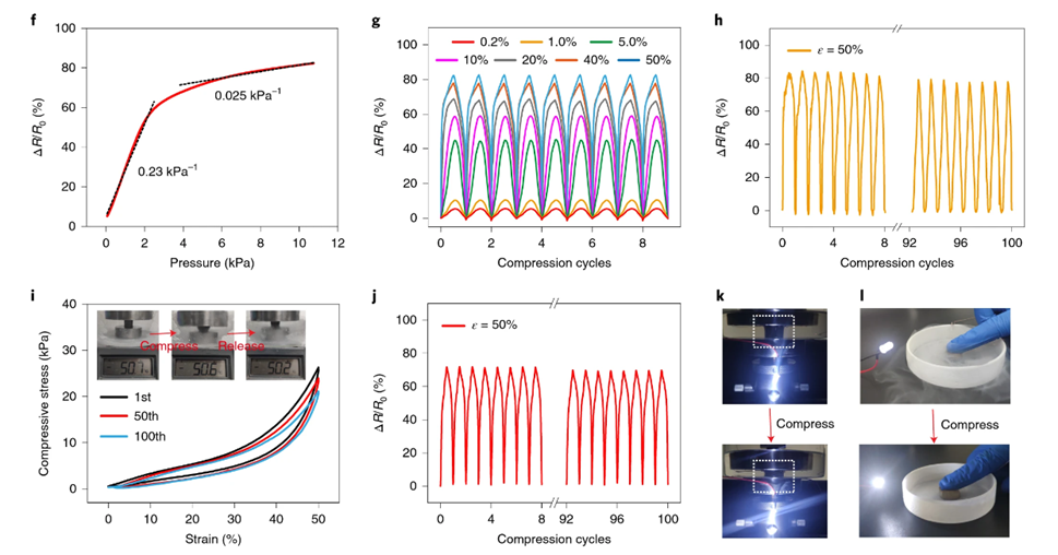 1. 图3测试并对比了该水凝胶的高可压缩性和抗疲劳性。