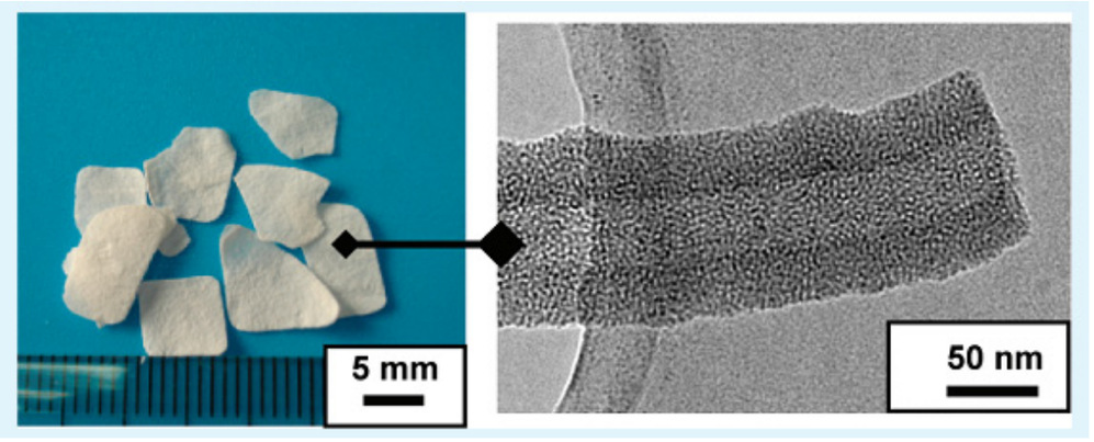 以自然纤维素物质(滤纸)和阳离子表面活性剂十六烷基三甲基溴化铵(CTAB)为双模板制备管壁带 有介孔结构的二氧化硅纳米管。首先,在水溶液中带正电的阳离子表面活性剂 CTAB 胶束吸附到电负性的 二氧化钛薄层预沉积的滤纸纤维表面,随后硅酸盐前驱体通过静电作用在表面活性剂表面沉积、水解、缩 合形成二氧化硅纳米材料骨架。通过焙烧和浓硫酸处理除去有机物模板和二氧化钛预报覆层,得到宏观和 微观都继承了滤纸结构的纳米材料,整个产物为管壁带有介孔结构的二氧化硅纳米管聚集而成的大块白色 片状物质。