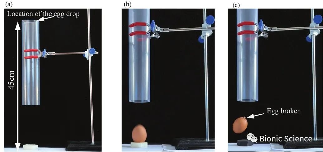 研究为了展示集成仿生材料在人体足部保护领域的潜在应用,我们将集成仿生材料嵌入到拖鞋的鞋跟中,并进行了行走测试。结果表明在正常速度下行走时与赤脚行走和穿着常规鞋垫相比,穿着仿生鞋垫时的冲击力最小。研究为了评估综合仿生材料保护易碎品的性能进行了鸡蛋掉落试验。当鸡蛋落在s型蜘蛛网泡沫上时,鸡蛋没有损坏,而当鸡蛋落在硅胶泡沫上时,鸡蛋破裂。 图8集成仿生结构复合材料应用演示